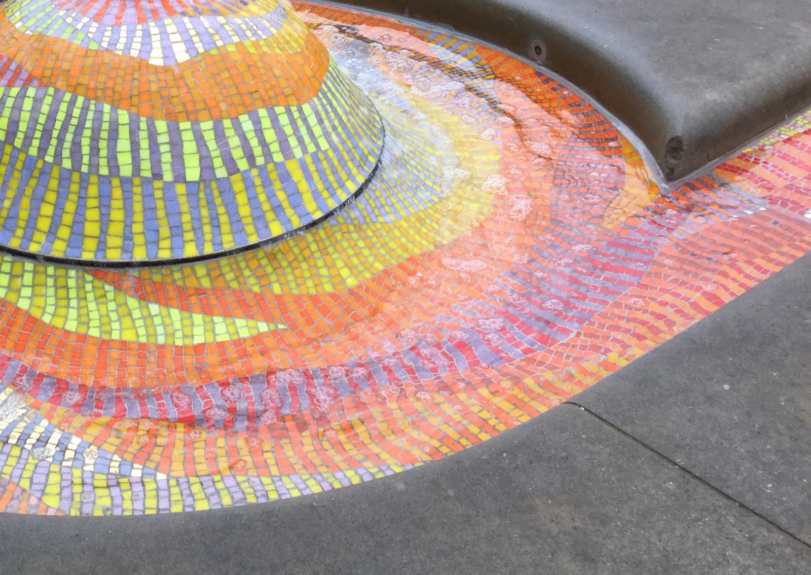 Photo by Sheila Webber: another shot of a Sheffield mosaic water feature (Howard Street Rill by Emma Biggs).